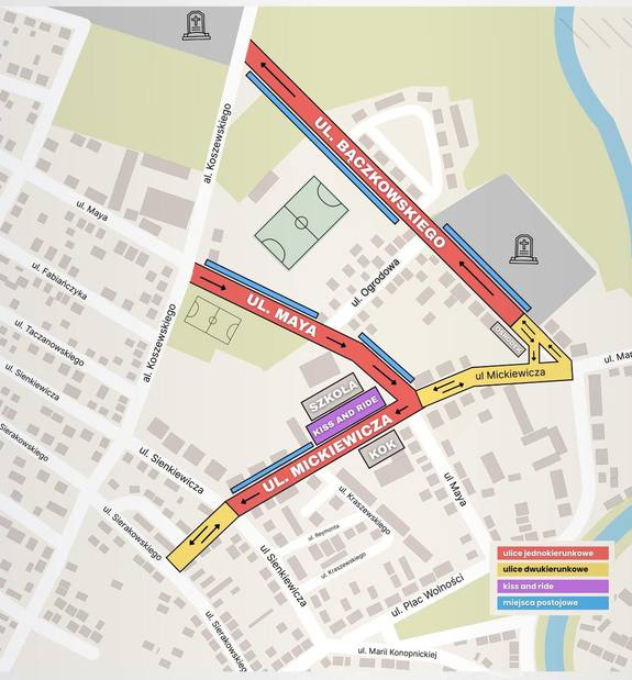 Przed 1 listopada samorząd miejski Kościana planuje wprowadzenie zmian w organizacji ruchu w rejonie ulic Bączkowskiego, Mickiewicza i Maya. Wprowadzone zmiany będą obowiązywać już na stałe. Zachowajmy ostrożność, zwracajmy uwagi na nowe znaki drogowe oraz stosujmy się do wprowadzonych zmian.