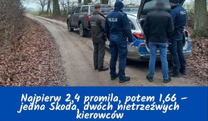 - Najpierw 2,4 promila, potem 1,66 – jedna Skoda, dwóch nietrzeźwych kierowców w kilka godzin Jedna miejscowość, jeden samochód i skrajnie nieodpowiedzialne decyzje. Najpierw kontrola drogowa i kierowca z blisko 2,5 promila alkoholu, kilka godzin później kolejny nietrzeźwy za kierownicą – ponad 1,6 promila. Obaj muszą się teraz liczyć z poważnymi konsekwencjami prawnymi.