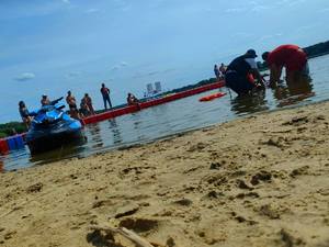 Największą niespodziaką i atrakcją, szczególnie dla najmłodszych plażowiczów był pokaz ratownictwa, przeprowadzony przez ratowników WOPR Leszno oraz policjantów Komsariatu Wodnego w Poznaniu z wykorzystaniem sprzętu wodnego. Każdy mógł porozmawiać z policjantami, ratownikami i strażakami o bezpieczeństwie, zobaczyć pokaz pierwszej pomocy oraz samemu poćwiczyć resuscytację na fantomie, pod okiem ratowników.