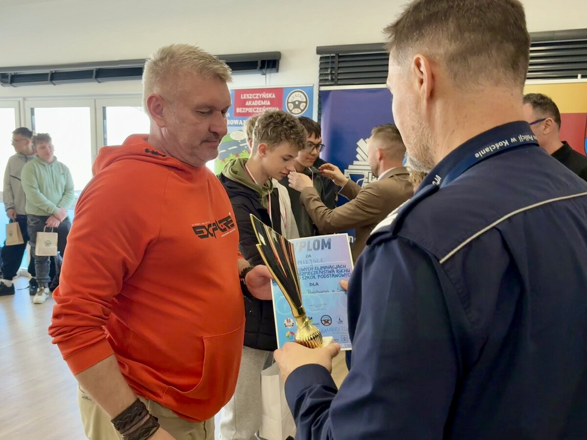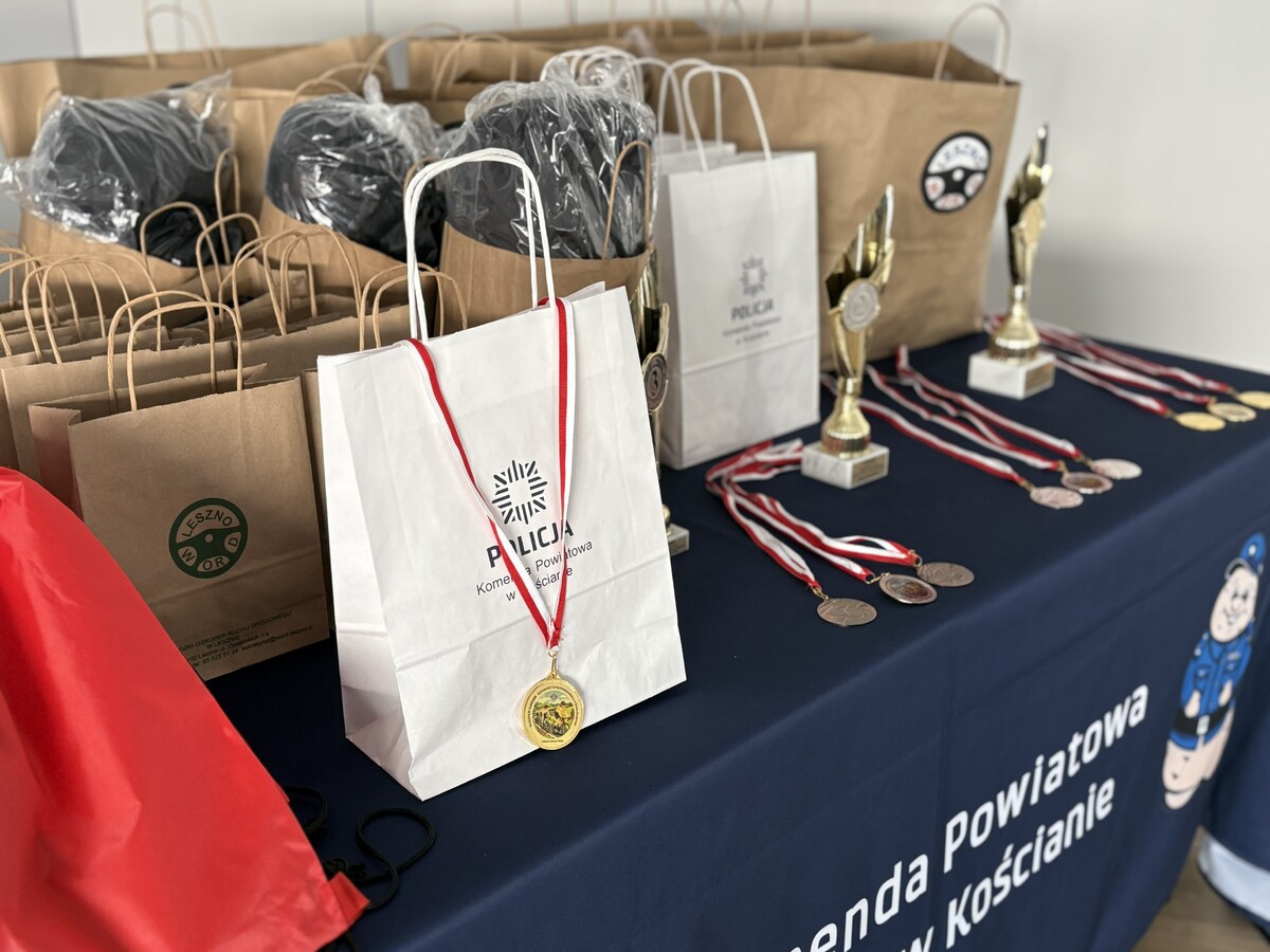 Każdy z uczestników otrzymał nagrody i upominki, które wręczył Komendant Powiatowy Policji w Kościanie mł. insp. Robert Przyjemski, Wicestarosta Kościański Albert Pelec, Wójt Gminy Kościan Andrzej Przybyła, Dyrektor Szkoły Podstawowej nr 3 w Kościanie Izabela Korzeniowska oraz Dyrektor Miejskiego Ośrodka Sportu i Rekreacji Witold Opielewicz. Przed ogłoszeniem wyników oraz wręczeniem nagród, Naczelnik Wydziału Ruchu Drogowego podinsp. Mateusz Marszewski wygłosił krótką przemowę, mówiąc jak ważne jest bezpieczeństwo w ruchu drogowym, znajomość przepisów oraz umiejętności udzielania pierwszej pomocy.