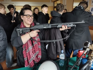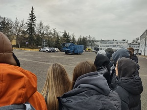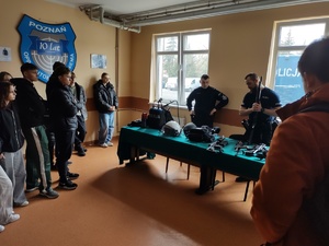 To jednak nie był jedyny punkt wycieczki, który pozostawił w młodzieży silne emocje i przemyślenia. Następnie uczniowie udali się z wizytą na Oddział Prewencji Policji w Poznaniu, gdzie mieli okazję z bliska przyjrzeć się codziennej służbie funkcjonariuszy. Było to niezwykle cenne doświadczenie, które pozwoliło im lepiej zrozumieć specyfikę pracy w Policji oraz zobaczyć profesjonalny sprzęt wykorzystywany podczas działań prewencyjnych.